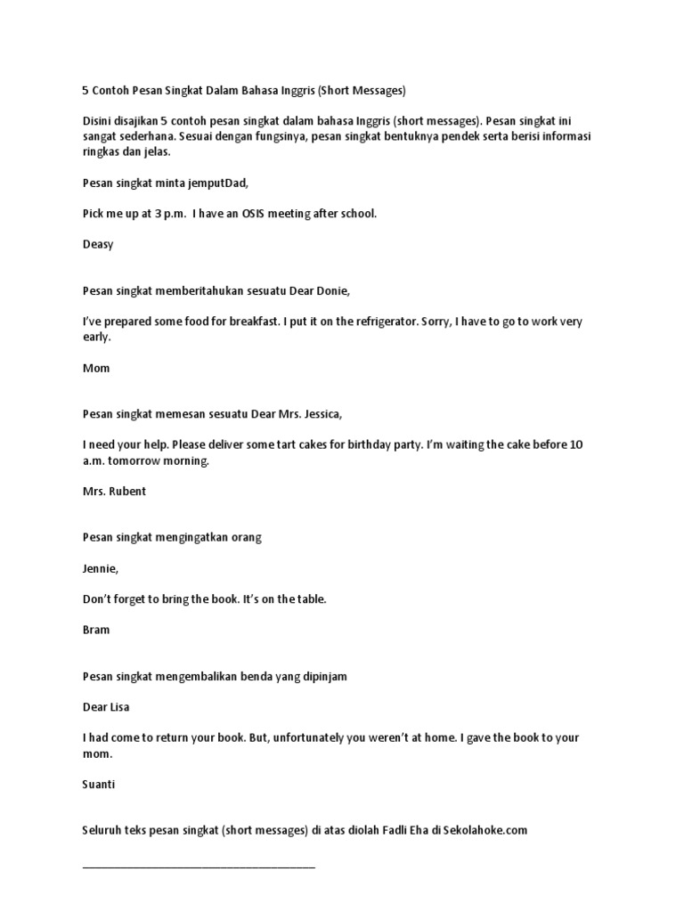 Bagaimana kita dapat berkomunikasi dengan bahasa inggris jika kita. Pesan singkat ini sangat sederhana. Menggunakan format huruf yang bersifat formal seperti time new roman, arial, dan verdana. (setelah itu, aku mandi dan makan malam dengan keluargaku. Singkat kata akhirnya bawang merah sampai di rumah nenek tua di pinggir sungai tersebut.